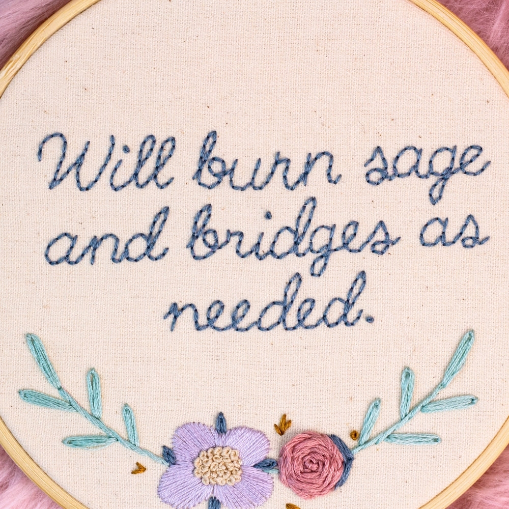 Burn the Sage & Bridges – Embroidered Hoop Art 🔥