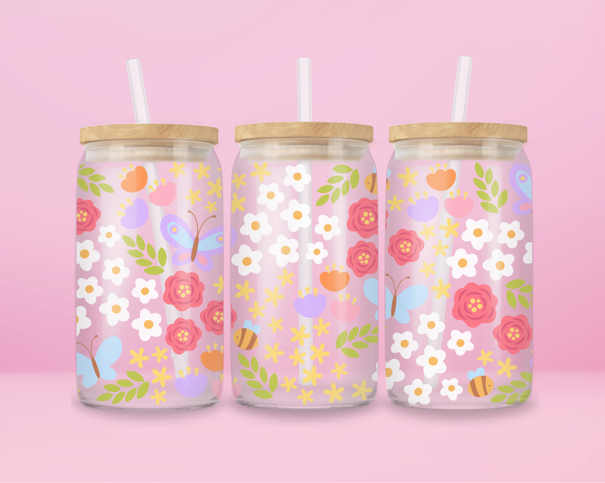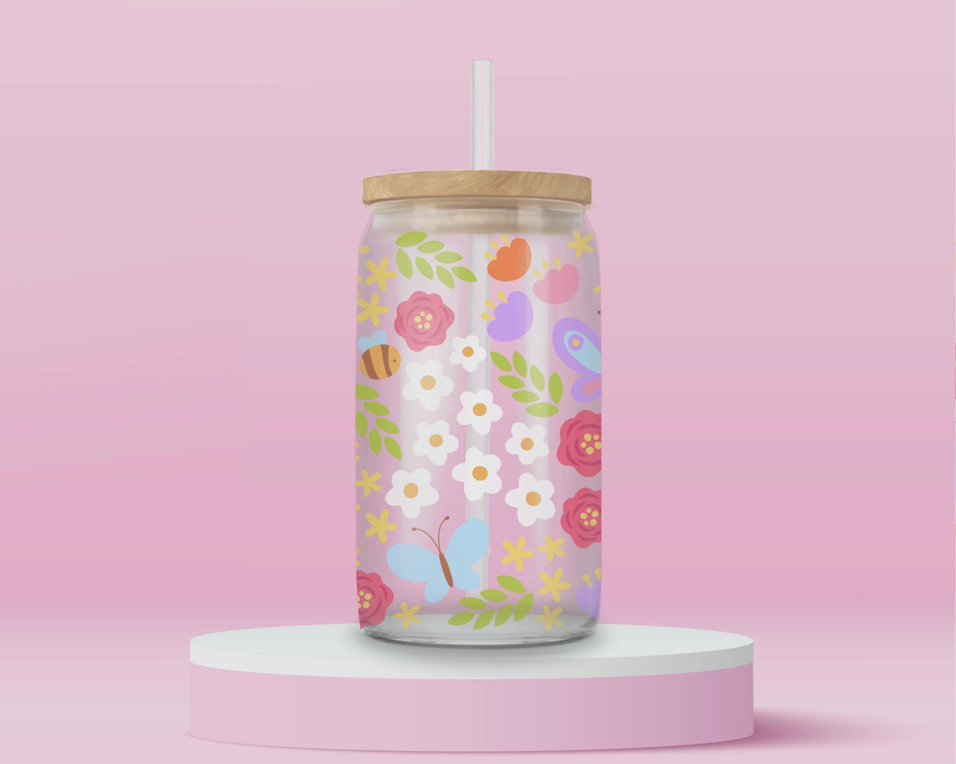 Butterfly Blooms & Bees Glass Tumbler 🌺🐝