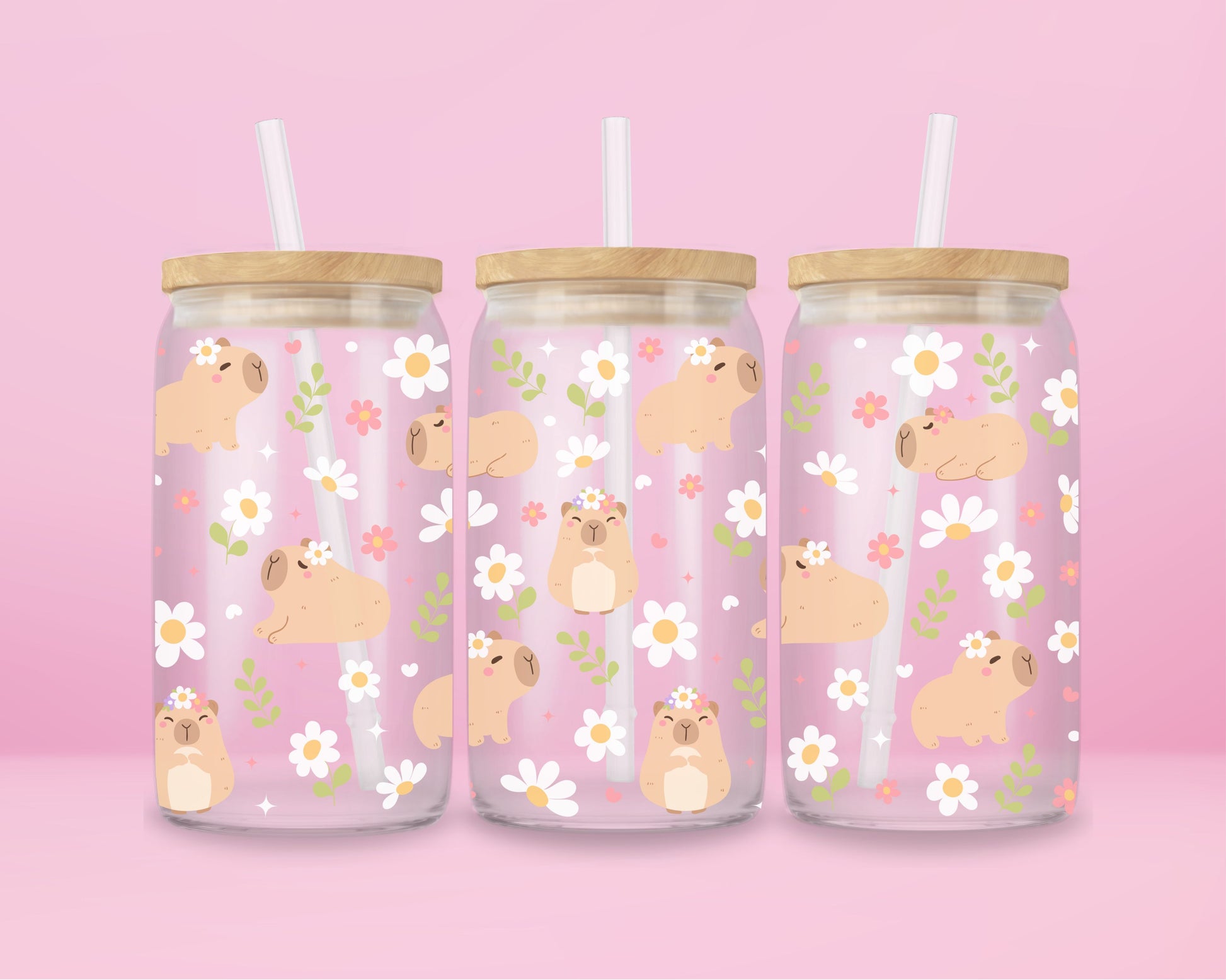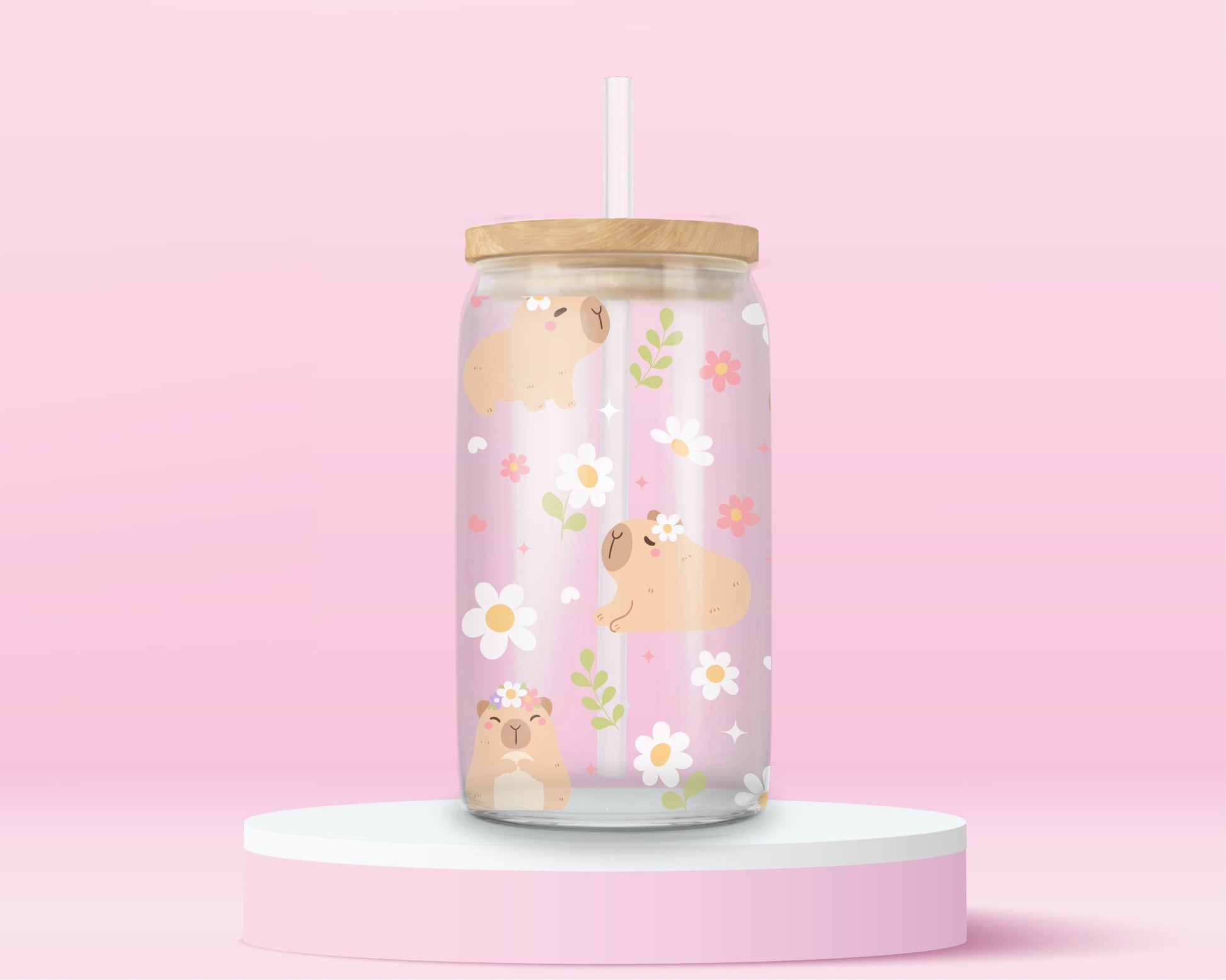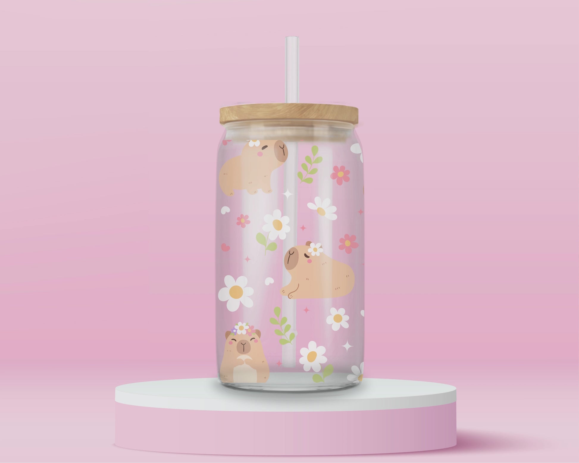 Capybara Daydream Glass Tumbler 🌸🐾