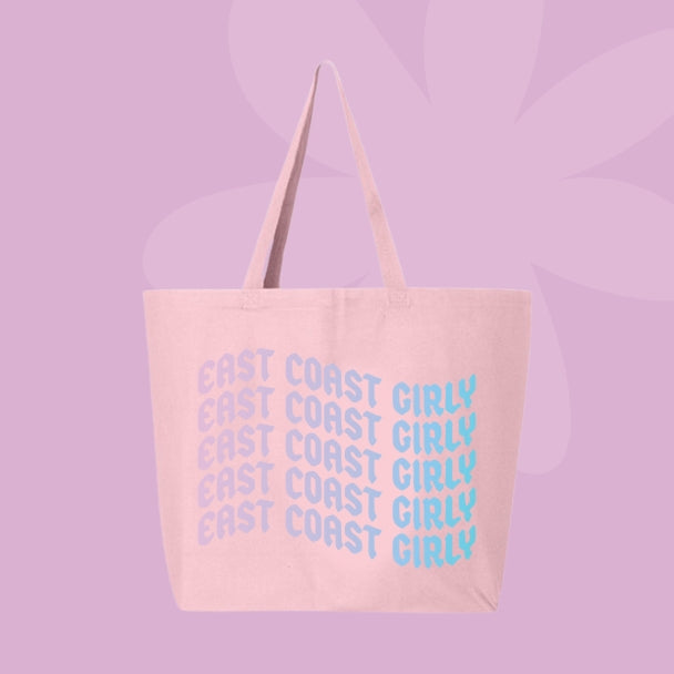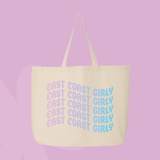 From the beach to the city streets, the East Coast Girly Tote is the perfect accessory to show off your coastal pride. Featuring the words "East Coast Girly" in a fun, wavy font, this tote brings that laid-back, breezy vibe straight to your wardrobe. Whether you’re strolling along the shore or brunching with your girl gang, this tote has plenty of space for your essentials—because who says you can’t be both chic and practical?