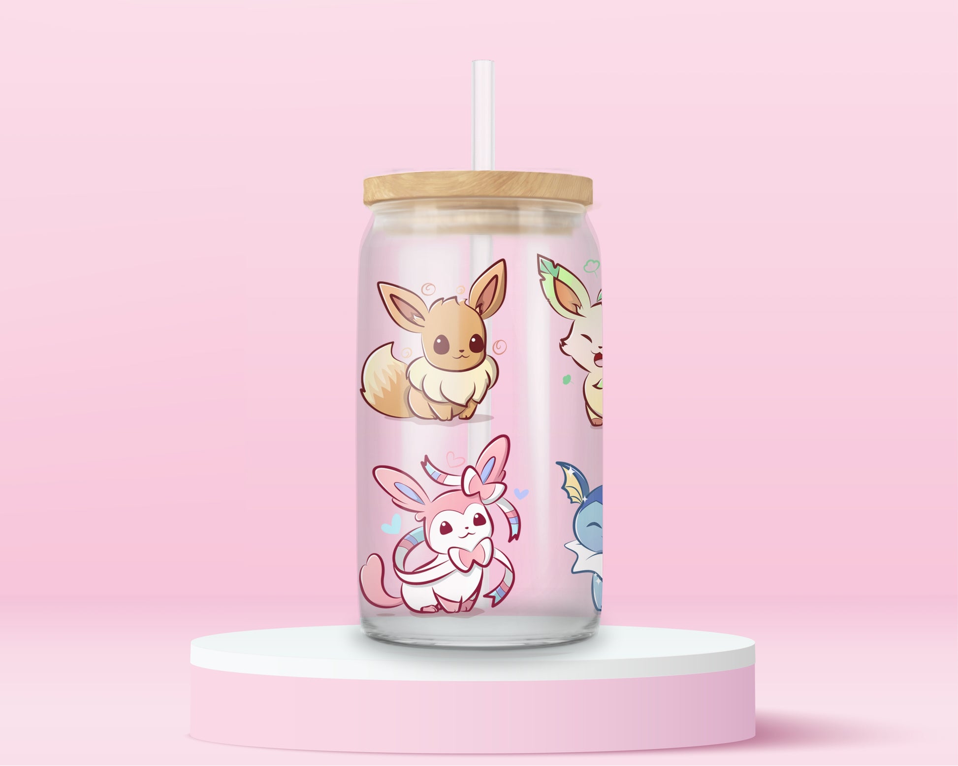 A dreamy Pokémon tumbler with Eevee and all her evolutions! Perfect for anime fans, gamers, and anyone who loves kawaii vibes.