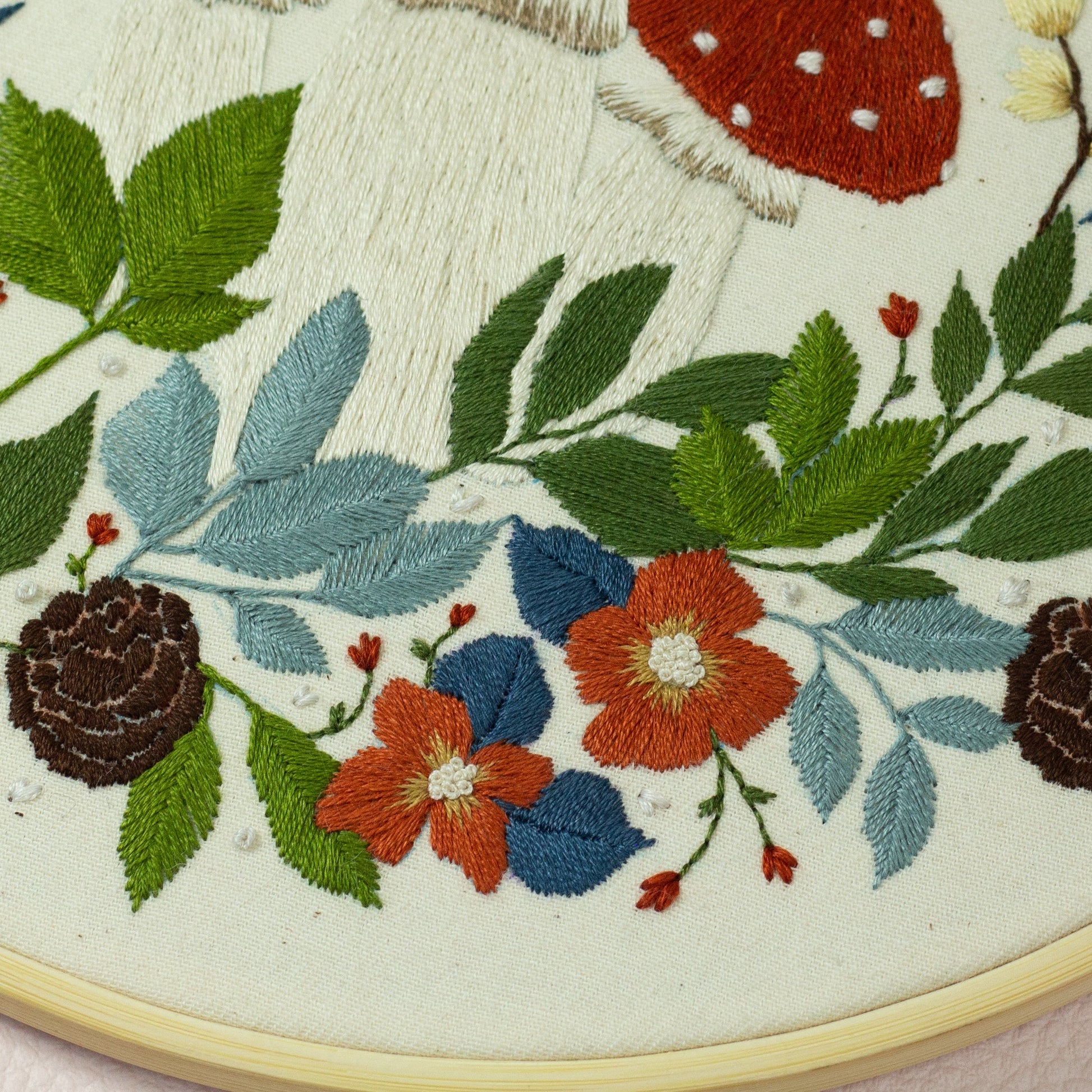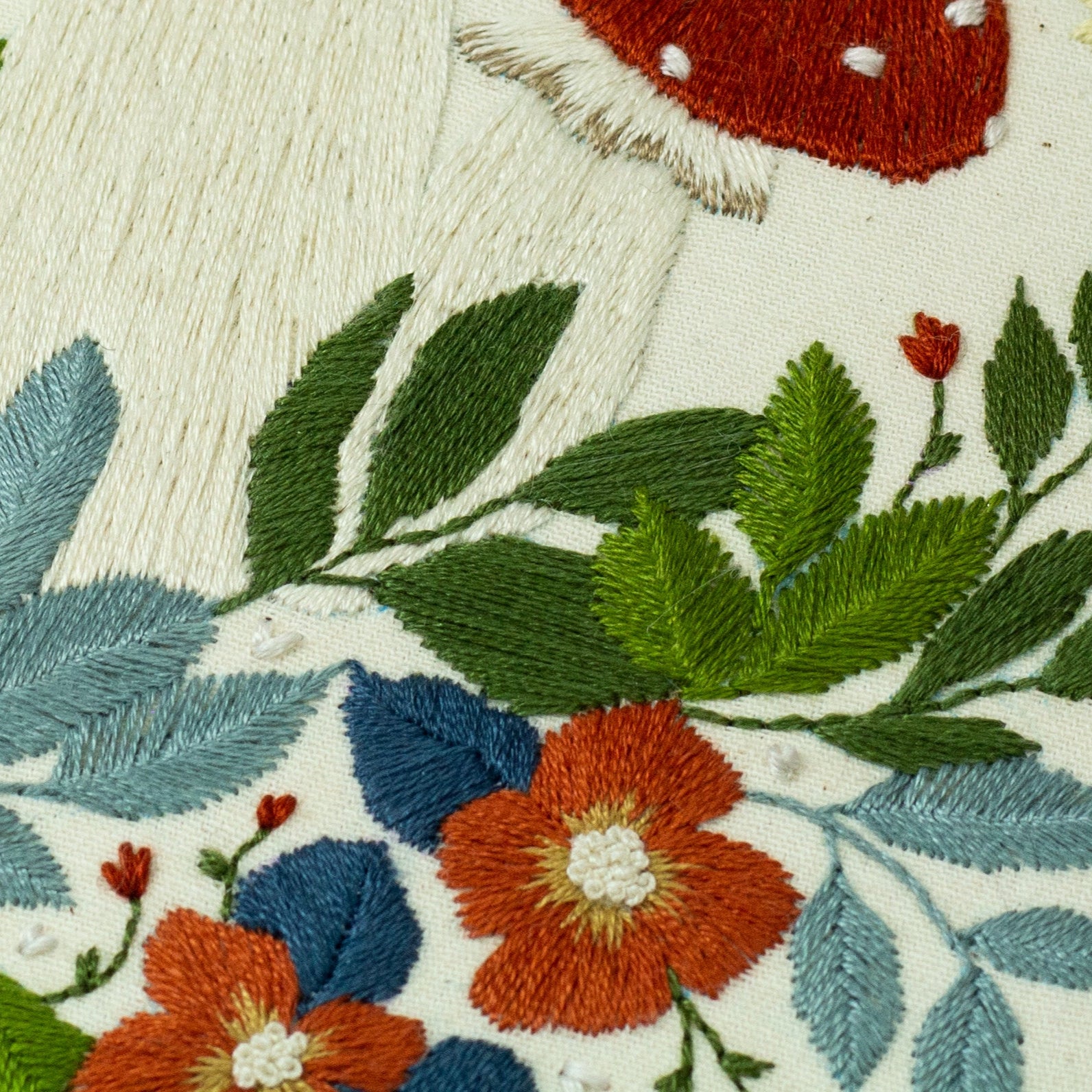 Enchanted Grove – Hand-Embroidered Mushroom Hoop 🍄