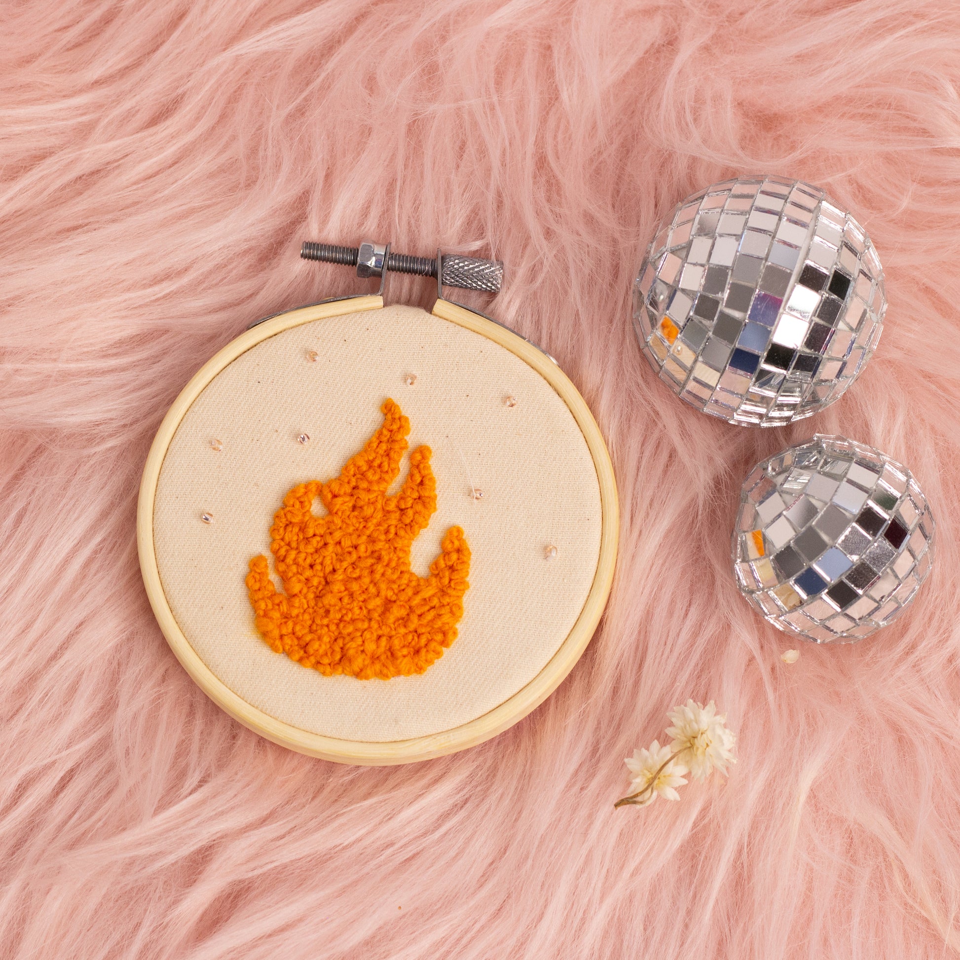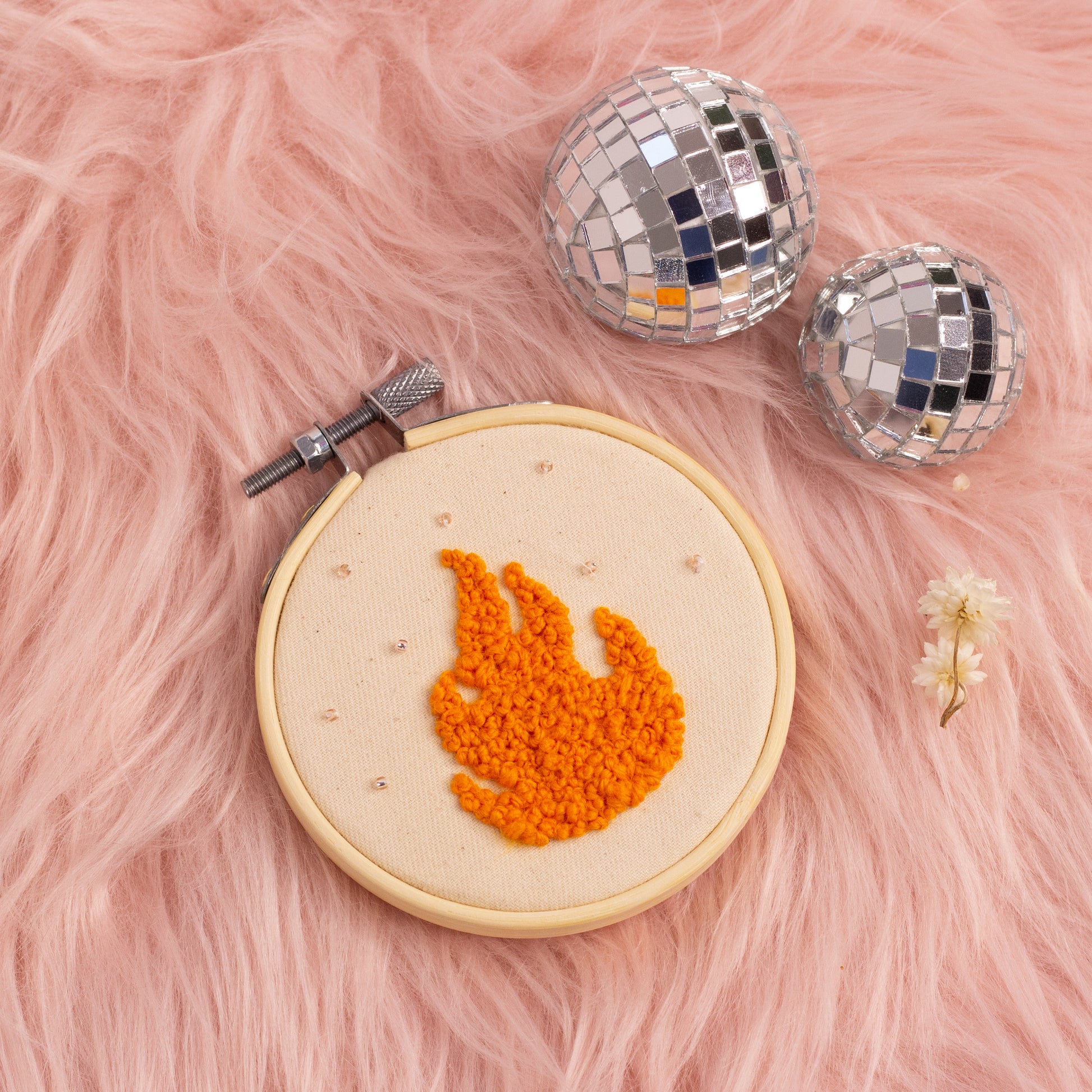 Light a spark in your decor with this fiery little French knot design! In bold, warm oranges, the flame is full of energy and attitude—perfect for those who love a little heat and want to set their space on fire (in the best way). 🔥💖