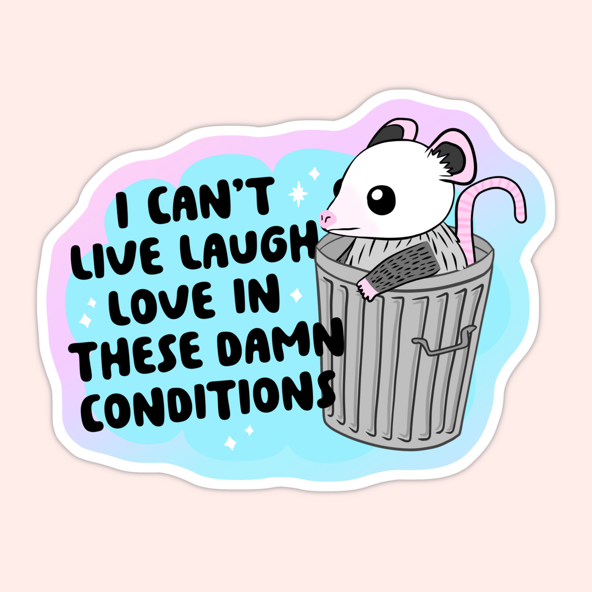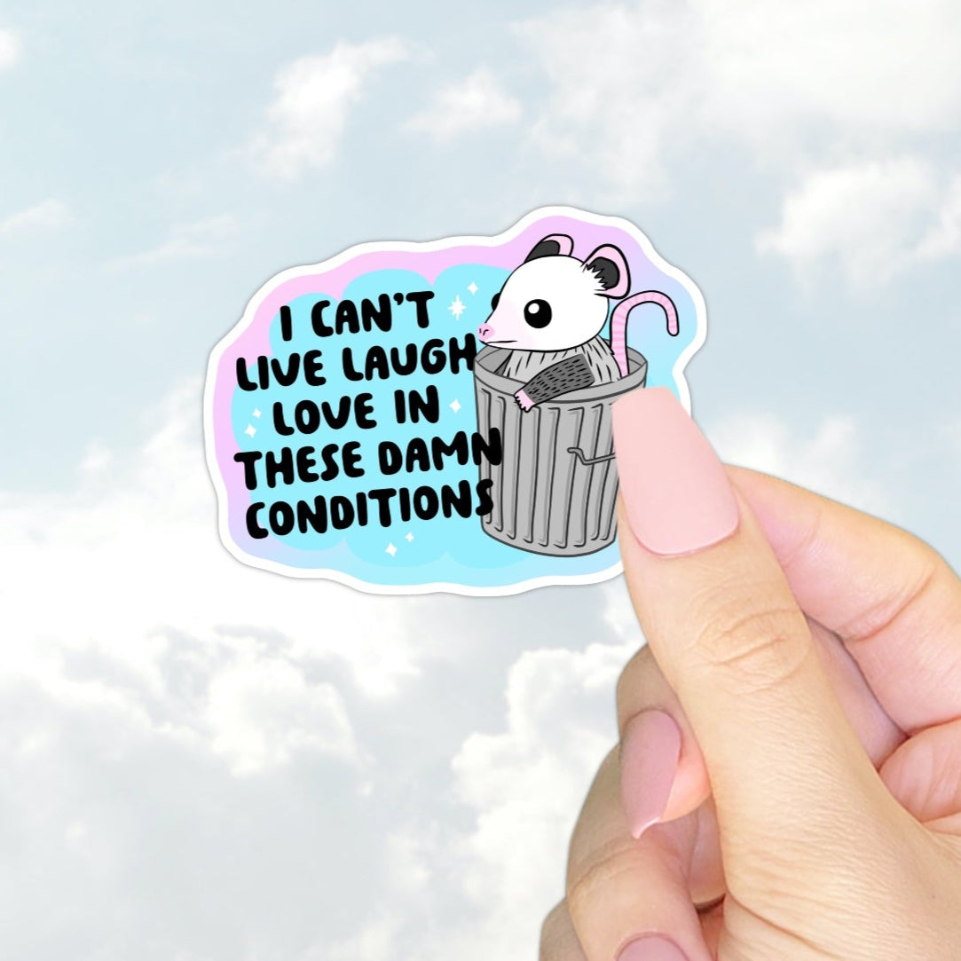 I Can’t Live Laugh Love in These Damn Conditions Sticker