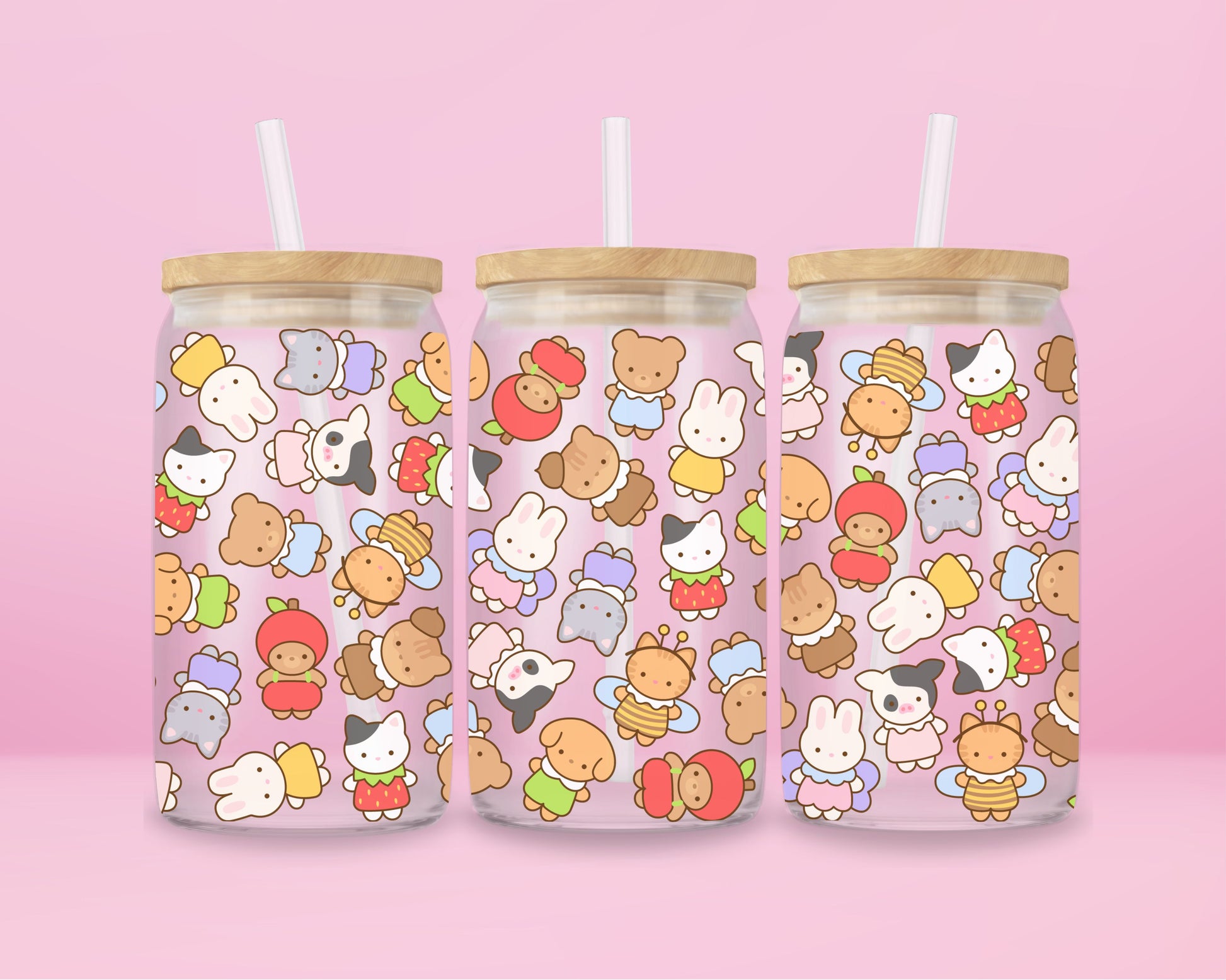 Kawaii Critters Glass Tumbler 🍓✨