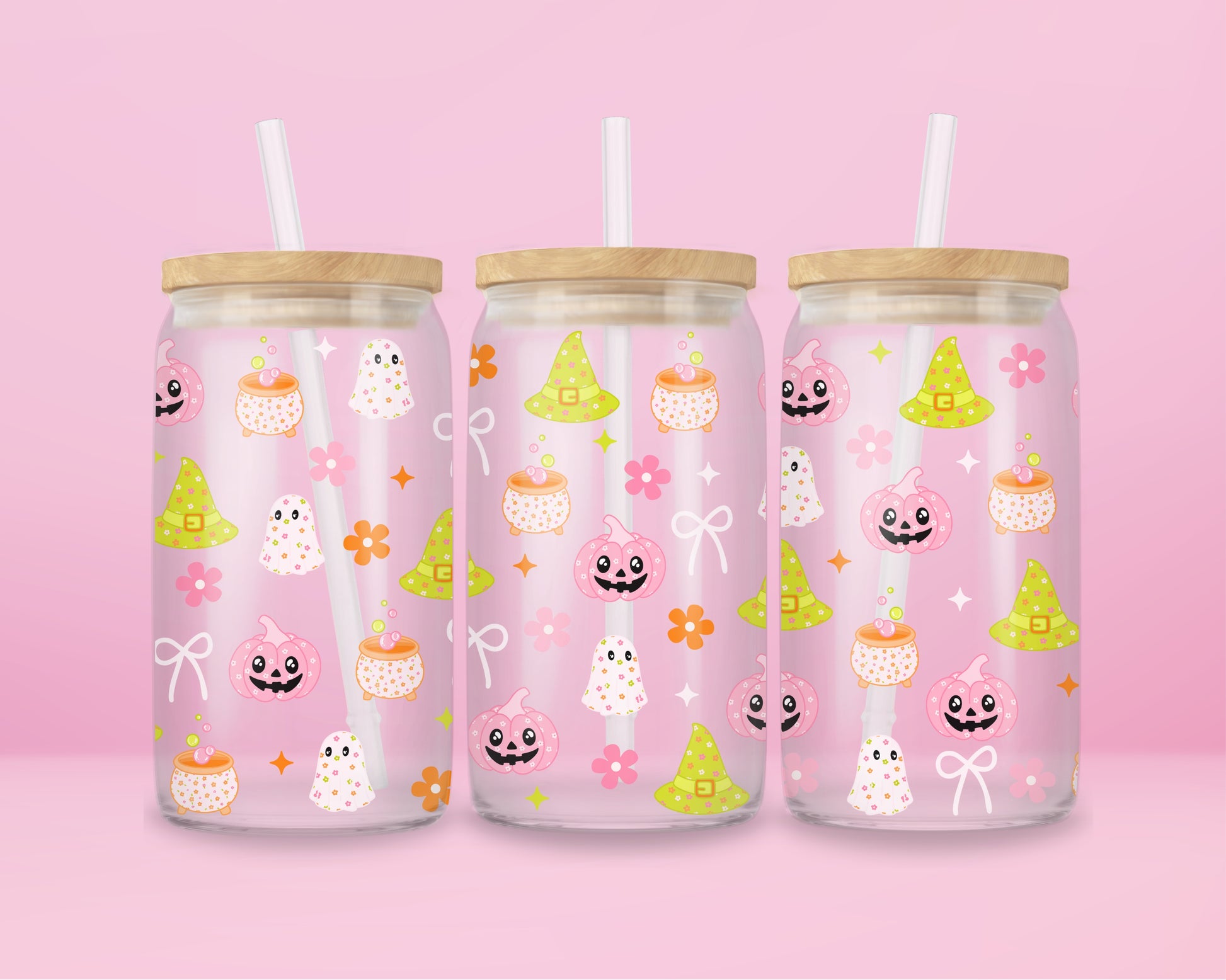 Who says spooky can’t be cute? 👻🎀 This pastel pink tumbler is decked out in kawaii Halloween vibes — think smiling pink pumpkins, tiny ghosts, witchy green hats, and bubbly cauldrons. It’s the ultimate mix of spooky season and soft girl aesthetic, making every sip a little magical ✨