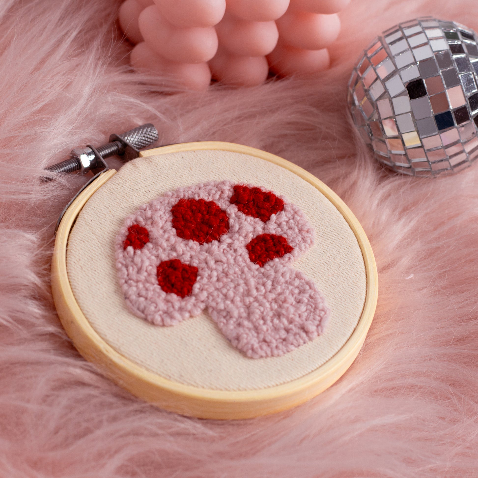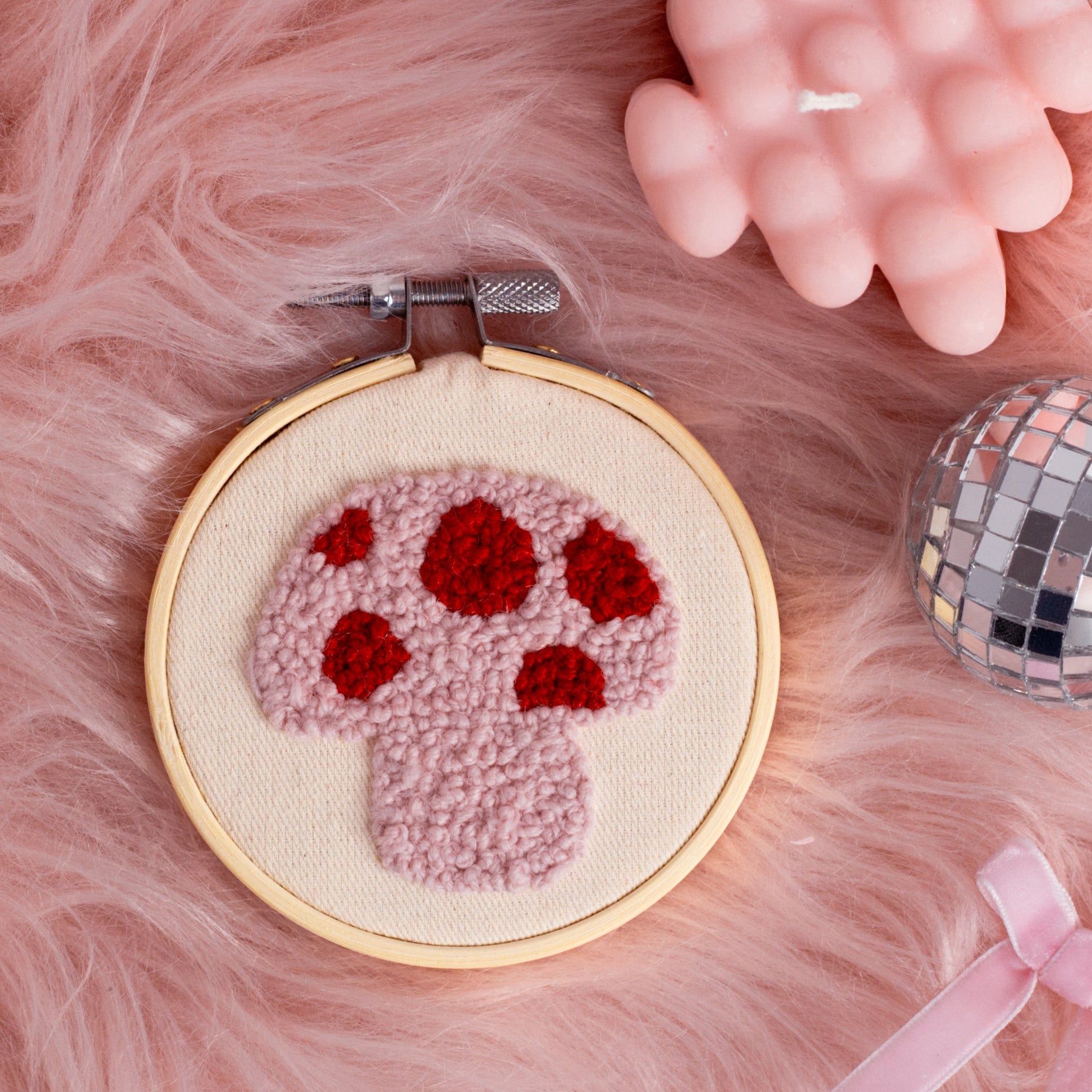 Pink Mushroom French Knot Embroidery Hoop 🍄✨
