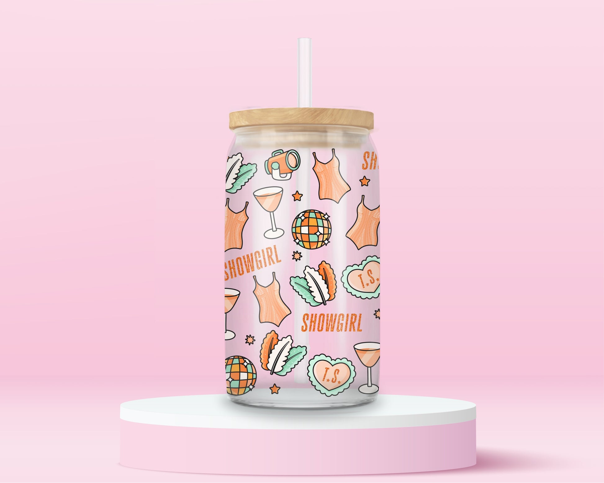 Inspired by Taylor Swift’s Life of a Showgirl vibe, this tumbler sparkles with retro disco energy. A must-have for Swifties and glitter girls.