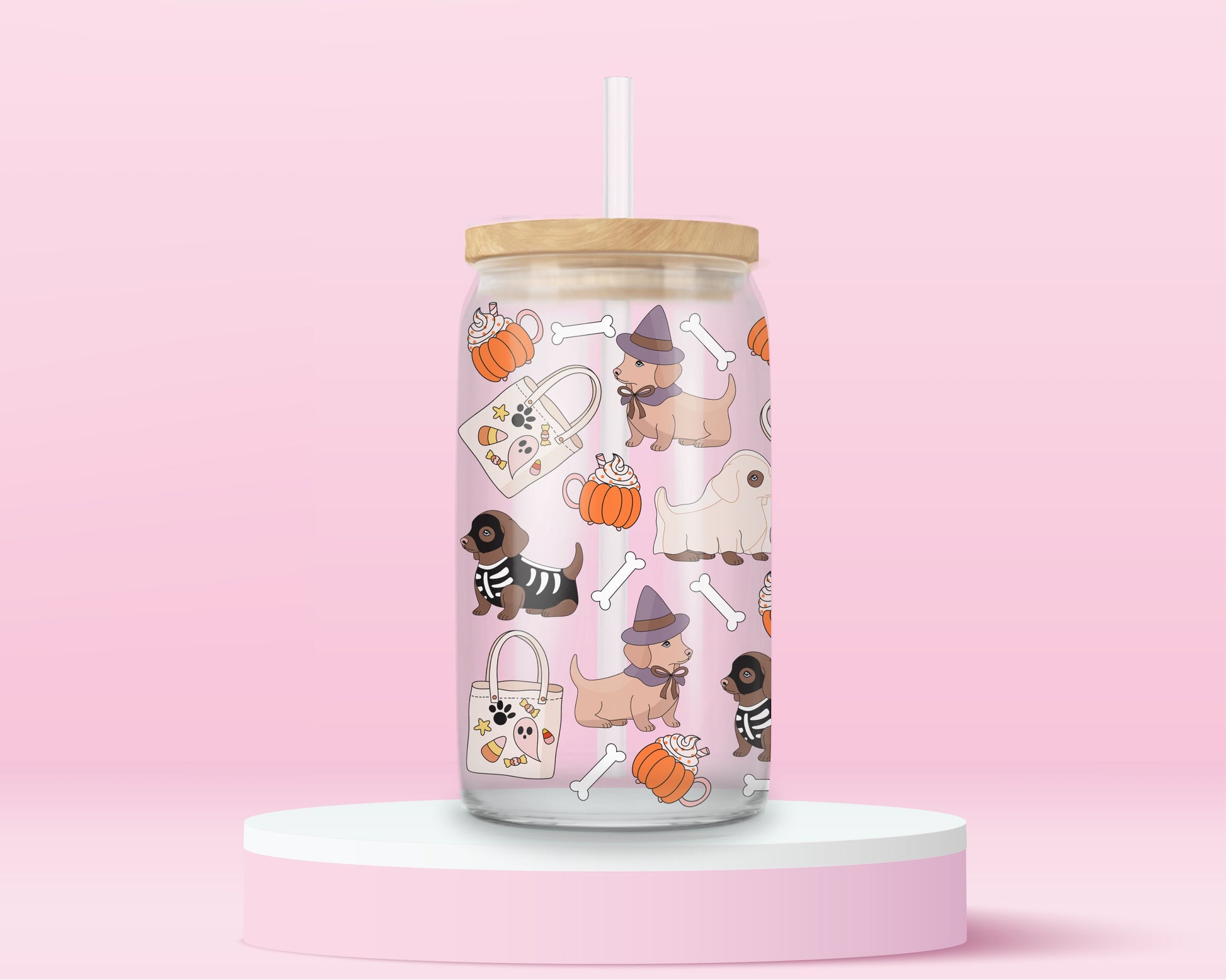 The ultimate tumbler for dog lovers! Features adorable pups in Halloween costumes with cozy fall accents. Cute, spooky, and perfect for autumn sips.