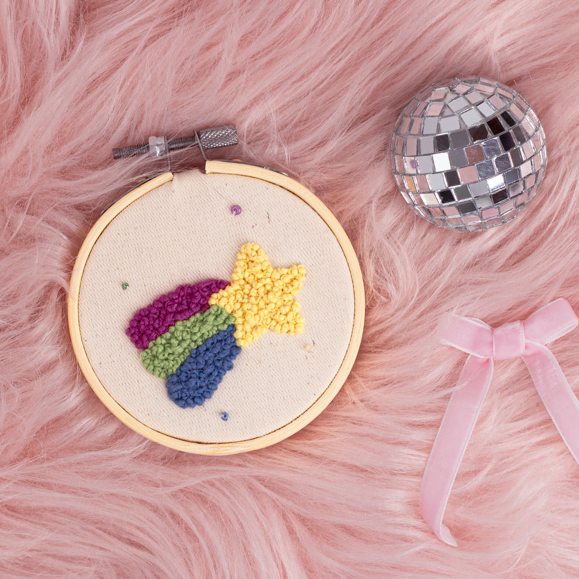 Starlight Wish French Knot Embroidery Hoop 🌟🌈